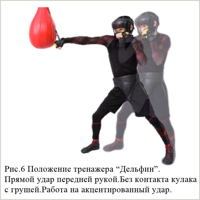 6.Количество повторений примерно такое же как при отработке ударов по воздуху.Начните с положения "Стрела"(5 раундов по 20 ударов сначала на одну руку,потом на другую руку).Сосредоточтесь на качестве каждого удара(ориентируйтесь на звук-хлопок).Делайте отработку ежедневно или через день.Со второй недели можете добавить отработку ударов из положения тренажера "Дельфин" (Hard Punch). Делайте это по следующему алгоритму:сначала 20 ударов из положения "Стрела",затем перехватив тренажер в положение "Дельфин",наносим 20 ударов из положения "Дельфин".Это один раунд.Затем сделайте ещё 4 раунда по такому же алгоритму.После чего переложите тренажер в другую руку и сделай таких же 5 раундов по 40 повторений(20 стрела+20 дельфин).Если по 5 раундов тяжело и вы чувствуете что теряете в качестве исполнения каждого удара,сократите количество раундов.Главное на первом этапе это координация и скорость.Не доводите себя до переутомления.После того как вы хорошо освоите каждый удар,наработаете координацию,постепенно увеличивайте количество раундов.
